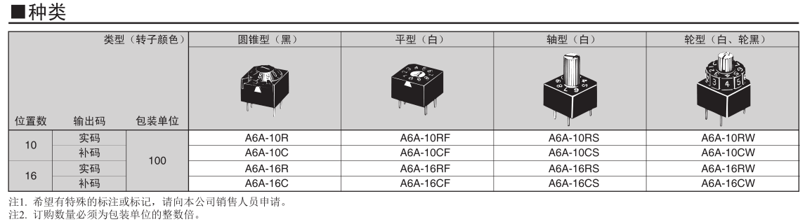 上面、侧面2个方向操作的圆锥型、可以通过长轴从面板进行操作的轴型、以及平型,具备各种型号的全系列产品。