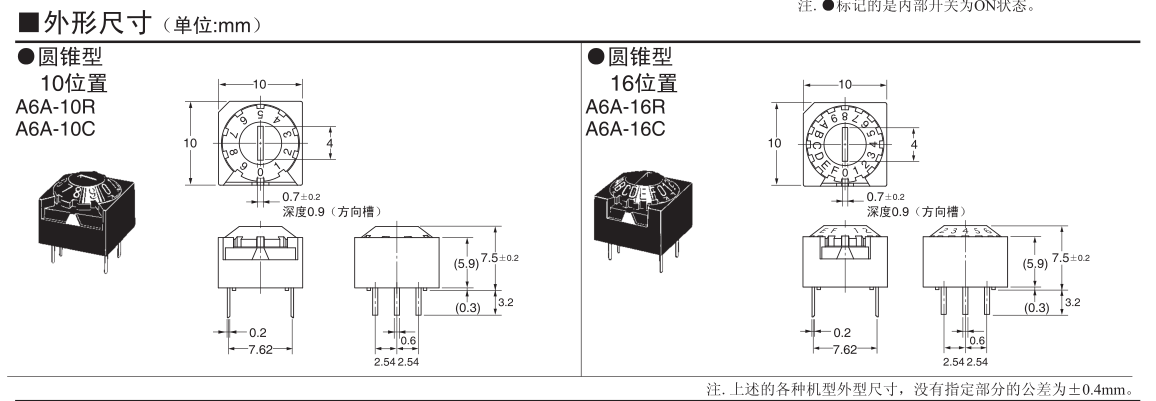 欧姆龙DIP开关, A6A-10R,欧姆龙DIP开关A6A