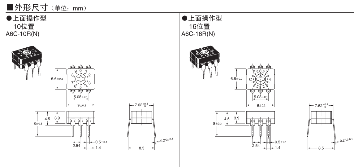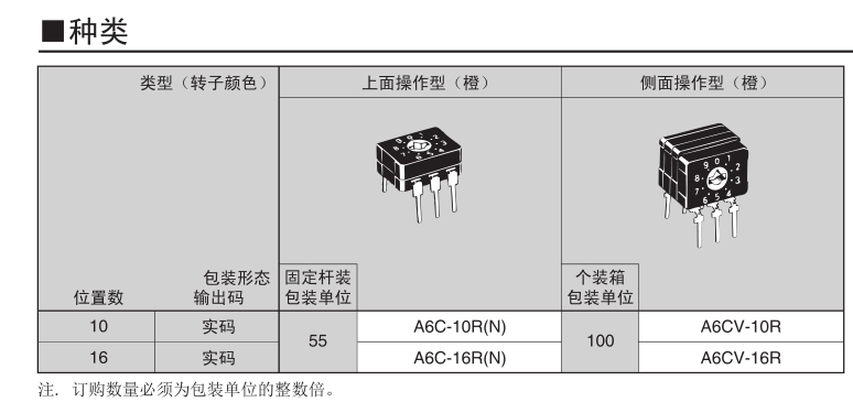 欧姆龙DIP开关, A6C-10R,欧姆龙DIP开关A6C