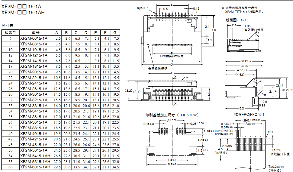 欧姆龙FPC连接器,XF2M-0615-1A,欧姆龙FPC连接器XF2M