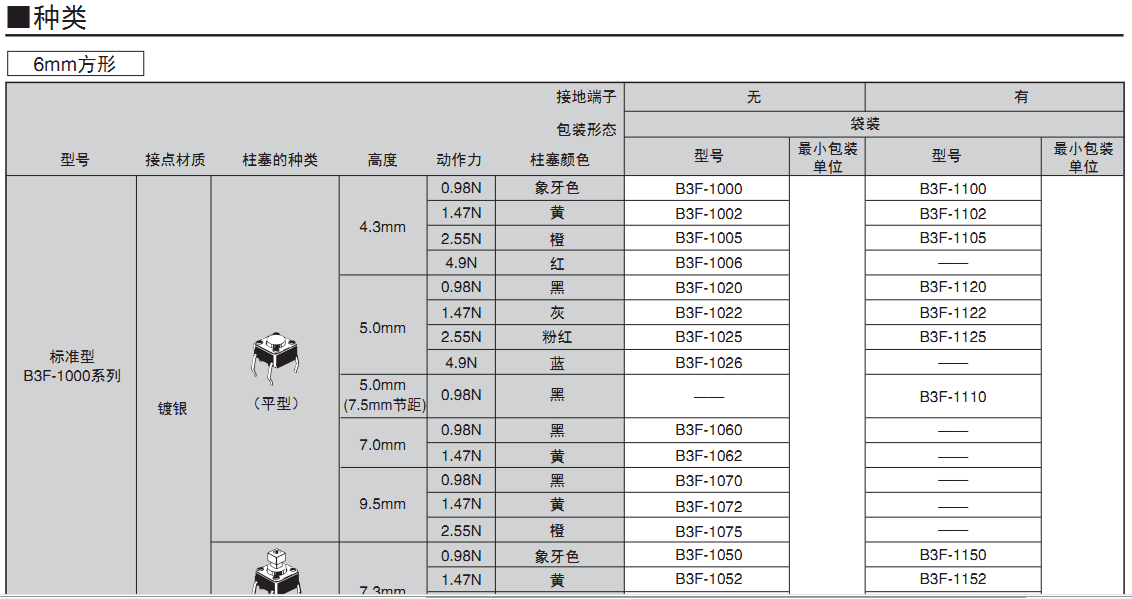 6mm方形、12mm方形具有横向操作、高负载、镀金型等全系列产品