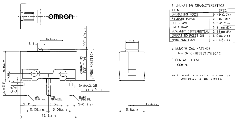 D2FC-F-7N(10M), 克力为:60+/-15G,寿命为1000万次;