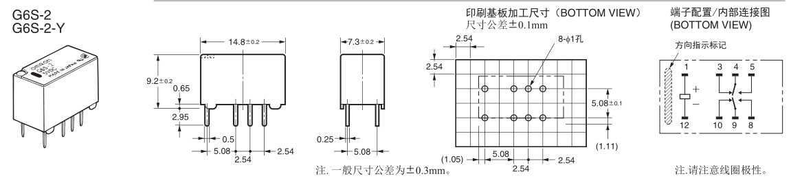 欧姆龙信号继电器,G6S-2 DC12V,2A小型信号继电器