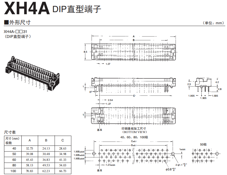 XH4A系列 半间距连接器(低高度重叠连接用)