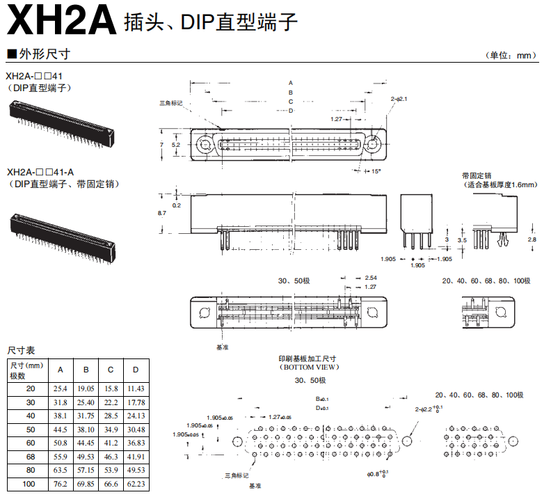 与基板的连接为4列交错配置(1.27mm×1.905mm)。
