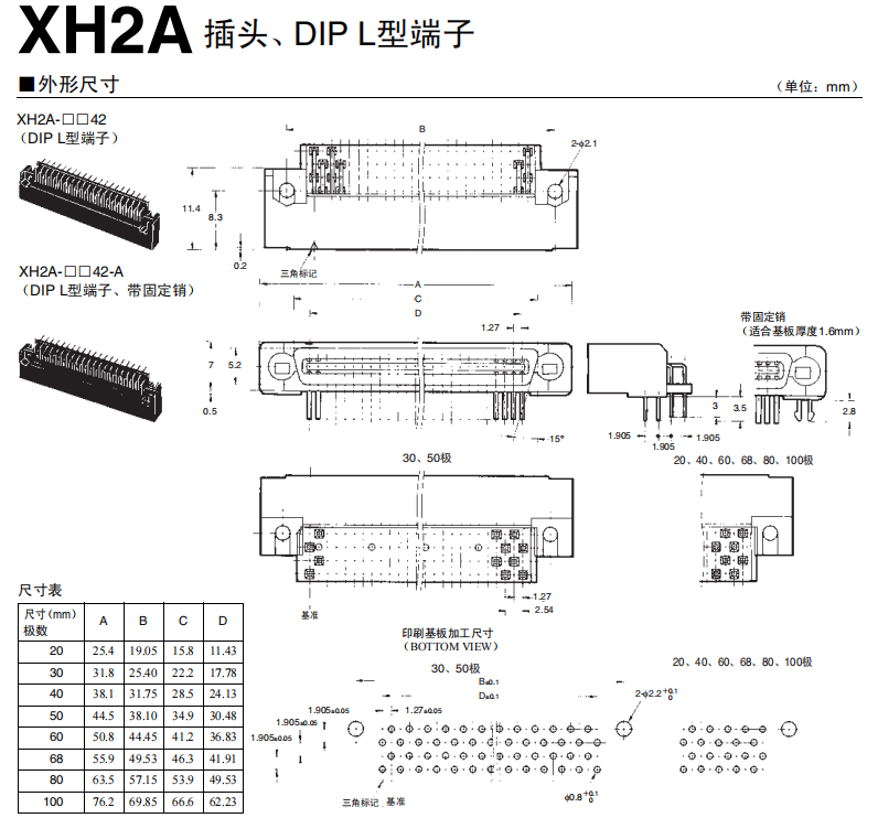 XH2A系列 半间距连接器(基板对基板连接用(带耳))