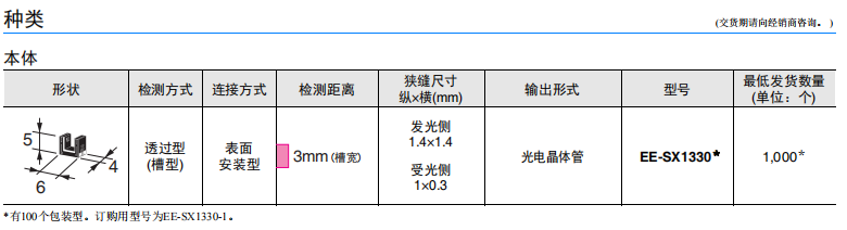 欧姆龙超小型槽型·SMD型(槽宽:3mm)
