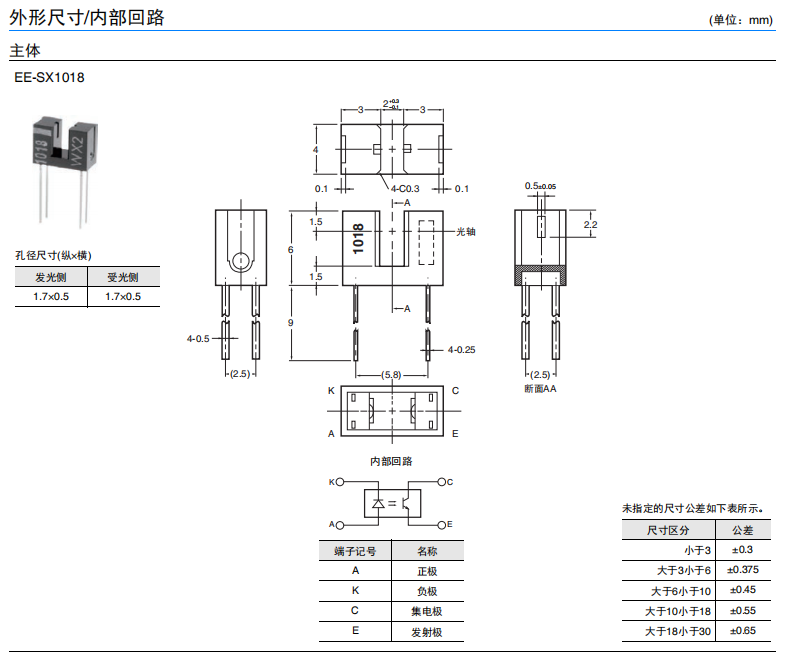 EE-SX1018 微型光电传感器(透过型)