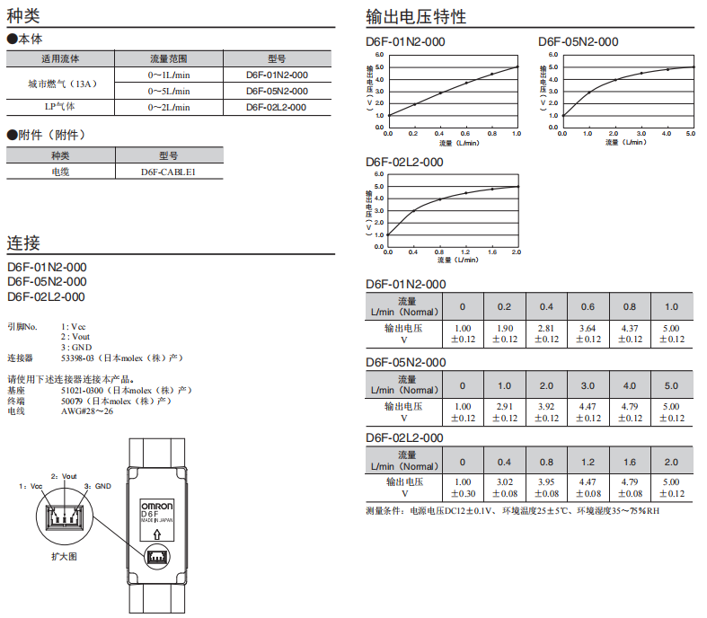 • D6F-N2/-L2燃气流量传感器